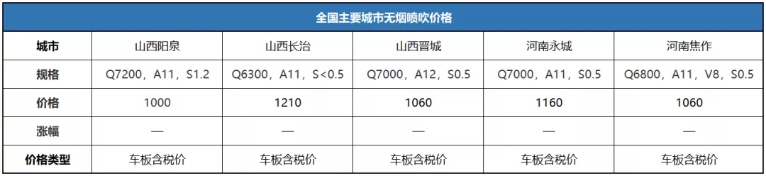 末煤方面,临近年底,各煤矿生产偏谨慎,产量普遍不高,主流煤企当前库存处在低位水平,目前多以保障长协合同户为主,发运顺畅。近期受钢材及焦炭市场走势偏弱影响,北方地区部分钢厂陆续开始打压市场喷煤的价格,部分市场煤价格出现小幅下调,单轮降幅多在20-30元/吨,但由于产地喷煤资源偏紧,喷吹煤主流煤企价格依旧较为稳定。截止12月11日,全国主要地区无烟喷吹煤价格如下: