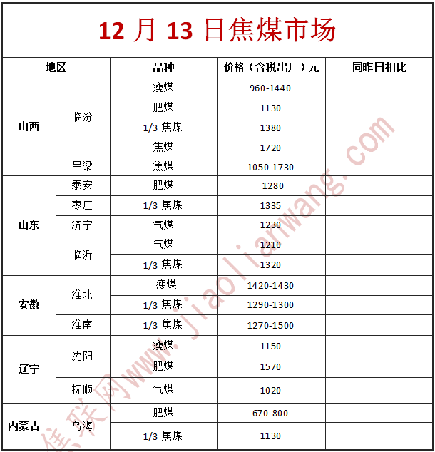 炼焦煤方面价格暂稳,受前期焦炭市场降价影响,吕梁部分高硫主焦成交价格小幅下行20-30元/吨;临汾部分低硫主焦受煤矿关停影响,销售情况有所好转,矿上基本无库存,短期价格或持稳运行;晋中地区部分中、高硫主焦及肥煤小幅下调30-50元/吨。部分煤矿由于雾霾及环保等因素影响发运,炼焦煤库存小幅累积,但并无销售压力,加之个别煤矿事故影响,市场预期后期部分煤种生产或将边际收紧有开始备货现象。部分焦企对年前原料煤市场看弱但认为降幅有限,采购需求有所放缓。港口煤数据,北方四港区总场存2406.8万吨,其中,秦皇岛港卸车6389车51万吨,装船39.5万吨,场存635万吨,锚地煤炭船舶27艘,预到9艘;曹妃甸港区958.6万吨;京唐港区588.3万吨;黄骅港224.9万吨,锚地煤炭船舶47艘,预到8艘。沿海六大电库存1764.47万吨,日耗74.15万吨,存煤可用天数23.79天。