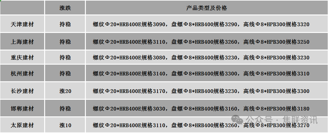 今日建筑钢材价格稳中偏强运行,部分市场上涨10-20元/吨。24个螺纹钢主要市场中,15个市场持平 ,占比62.5%,9个市场上涨,占比37.5%。期货方面:日盘螺纹2601开3040收3045,最高3076最低3040,跌1跌幅0.03%;铁矿2601开771.0收767.0,最高775.5最低762.5跌4.5跌幅0.58%。钢厂调价:陕钢西安建材上调20。行业方面:国家统计局数据显示:2025年9月,中国粗钢产量7349万吨,同比下降4.6%;生铁产量6605万吨,同比下降2.4%;钢材产量12421万吨,同比增长5.1%。1-9月,中国粗钢产量74625万吨,同比下降2.9%;生铁产量64586万吨,同比下降1.1%;钢材产量110385万吨,同比增长5.4%。宏观方面:中国共产党第二十届中央委员会第四次全体会议20日上午在北京开始举行。中央委员会总书记习近平代表中央政治局向全会作工作报告,并就《中共中央关于制定国民经济和社会发展第十五个五年规划的建议(讨论稿)》向全会作了说明。国家统计局数据显示,前三季度,我国GDP为1015036亿元,按不变价格计算,同比增长5.2%。三季度,我国GDP为354500亿元,按不变价格计算,同比增长4.8%。国家统计局数据显示,9月份,规模以上工业增加值同比实际增长6.5%;9月份社会消费品零售总额同比增长3.0%;1—9月份,全国固定资产投资(不含农户)同比下降0.5%。国家统计局数据显示, 9月份,70个大中城市中,各线城市商品住宅销售价格环比下降,同比降幅继续呈收窄态势。市场方面:日盘钢材期货早盘短期上涨后持续走低,收盘价微幅收绿,螺纹主力最低下探至3040元/吨,热卷主力最低下探至3200整数关口;双焦期货强势上升后震荡回落,焦煤收盘涨幅超2%,焦煤涨幅超1%。早盘期螺震荡偏强运行,市场维持谨慎观望态度,现货价格小幅跟涨,午后盘面震荡走弱,现货价格盘整运行,终端需求表现欠佳,钢厂出货承压,多以消化库存为主,预计短期建材现货价格或窄幅震荡运行。