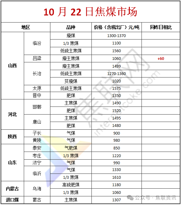 今日国内炼焦煤市场价格偏强运行。供应方面,乌海地区部分煤矿因环保及安监趋严有所停产,加之供给端煤矿近日事故仍零星发生,区域性供应有所缩减。在焦炭市场利好带动下,贸易商询盘与实际成交订单稍有增加,煤矿出货顺畅,煤企焦煤库存有不同程度下滑,考虑到目前煤矿厂内焦煤库存低位,且焦钢企业对部分优质资源采购力度不减,带动部分煤种有明显上涨现象。价格方面,现山西临汾地区主焦煤(A11、S3.5、G92)上调113元至出厂价1089元/吨,主焦煤(A11、S3.2、G60)上调2元至出厂价702元/吨,1/3焦煤(A12、S1.0、G90)上调20元至出厂价1100元/吨;吕梁地区主焦煤(A11、S1、G85)上调91元至出厂价1545元/吨,主焦煤(A12、S1、G85)上调100元至出厂价1500元/吨,主焦煤(A9.5、S1.3、G78)上调50元至出厂价1260元/吨,主焦煤(A10.5、S3.0、G85)上调25元至出厂价1205元/吨,瘦主焦煤(A8.5、S2.2、G75)上调60元至出厂价1060元/吨,瘦精煤(A10、S1.3、G60)上调73元至出厂价1268元/吨;晋中地区主焦煤(A15、S0.6、G75)上调57元至出厂价1207元/吨,瘦主焦煤(A12、S0.9、G75)上调10元至出厂价1330元/吨,肥煤(A13.5、S0.7、G90)上调10元至出厂价1110元/吨,贫瘦精煤(A9.5、S2.3、G10)上调10元至出厂价830元/吨;太原地区瘦原煤(S0.55、G70、回收35)上调30元至出厂价650元/吨。需求方面,铁水近期虽有小幅下滑,但总体仍在高位,刚需仍有支撑,下游库存暂时处于安全位置,但近期考虑焦煤供应有收紧预期,部分采购计划有增加预期,但由于焦钢盈利状况普遍不佳,多数仍维持按需采购为主。综合来看,预计短期国内炼焦煤市场向好运行,部分优质资源继续上涨。蒙煤方面,乌海地区检查趋严,停产煤矿较多,当地因资源供应紧缺,有意开始挺价,贸易商多有涨价意愿。现蒙5原煤主流报价1095元/吨左右,蒙5精煤主流报价1307元/吨左右。
