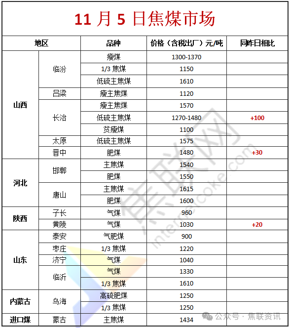 今日国内炼焦煤市场价格维持偏强状态。供应方面,煤矿受安全及环保常态化检查影响,产能释放困难,叠加山东大矿接到增储任务,加剧焦煤供应紧张局面。受焦企第三轮提涨落地消息支撑,带动库存低且优质的主焦煤价格进一步探涨,焦煤仍延续强势格局,且线上竞拍多数煤种仍保持涨势,流拍率低位,煤矿库存继续下滑,考虑炼焦煤供需仍处紧平衡,产地煤矿心态偏乐观,部分煤矿报价或继续追高。价格方面,现山西临汾地区主焦煤(A9、S0.5、G85)上调60元至出厂价1670元/吨,主焦煤(A9、S0.5、G88)上调60元至出厂价1670元/吨,主焦煤(A9.5、S0.5、G80)上调39元至出厂价1638元/吨;吕梁地区主焦原煤(A6.5、S0.75、G90)上调100元至出厂价900元/吨,主焦煤(A11、S0.6、G88)上调67元至出厂价1640元/吨,主焦煤(A11、S1、G85)上调51元至出厂价1596元/吨,主焦煤(A9.5、S1.3、G78)上调70元至出厂价1400元/吨,主焦煤(A11、S2.2、G80)上调17元至出厂价1207元/吨,肥煤(A14、S0.5、G90)上调150元至出厂价1550元/吨;长治地区主焦煤(A11.5、S1.0、G85)上调100元至出厂价1480元/吨,瘦精煤(A10.5、S0.5、G50)上调50元至出厂价1350元/吨;晋中地区主焦煤(A15、S0.6、G75)上调42元至出厂价1460元/吨,肥煤(A13.5、S0.7、G90)上调50元至出厂价1250元/吨,肥煤(A9、S1.9、G95)上调30元至出厂价1480元/吨;忻州地区1/3焦煤(A10.5、S2.0、G85)上调40元至出厂价1249元/吨;陕西黄陵地区气精煤(A7.0、S0.45、G70)上调20元至出厂价1030元/吨。需求方面,下游企业虽有不同程度的限产,但对炼焦煤仍有较强采购意愿,叠加今日焦炭价格第三轮涨价已全面落地,下游焦钢企业库存仍处于低位,以按需采购为主,需求量不减。综合来看,预计短期内焦煤供需偏紧状态将持续,焦煤价格继续高位运行。蒙煤方面,近日期货盘面有所下跌,市场多观望,影响各口岸原煤价格上涨及成交趋势有所放缓。现蒙5原煤主流报价1165元/吨左右,蒙5精煤主流报价1434元/吨左右。