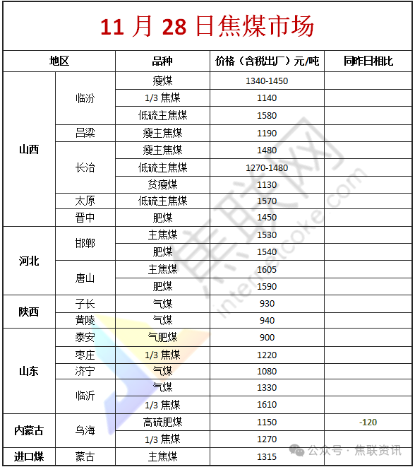 今日国内焦炭市场偏弱运行,邢台、天津、唐山、石家庄等地部分钢厂对焦炭采购价格进行首轮提降50-55元/吨,于2025年12月1日零点执行,焦炭首轮提降开启。供应方面,随着环保管控力度逐渐缓和,区域内焦企生产积极性较高,加之原料端煤价持续下调,在成本让利下,焦企利润继续走扩,开工维持高位水平。然由于下游钢厂催货现象减少,焦企厂内库存压力渐显。现山西地区主流准一级干熄焦报1695-1775元/吨。需求方面,近期钢厂高炉检修现象延续,铁水产量持续下滑,加之近期终端需求没有明显改善,成材价格持续回落,导致钢厂盈利空间进一步收窄,对焦炭需求持续减少。而部分钢厂因顶装焦等优质资源供应仍然偏紧,焦炭到货稍显乏力,近期对焦炭仍有采购需求。其余钢厂受焦炭到货情况良好影响,厂内库存稳中有增,补库暂已结束,钢厂多有控制到货情况。港口方面,港口焦炭现货偏弱运行,两港库存水平无较大变化,市场情绪一般,港口询盘较昨日持平,现港口准一级湿熄焦主流现汇出库价报1450元/吨(-)。综合来看,当前钢厂焦炭库存维持中位水平,部分钢厂开始执行控量采购策略,导致焦企出货压力渐显。叠加钢材市场正值传统消费淡季,钢厂采购意愿持续低迷,影响焦炭采购需求有所下滑。在供需格局走向宽松的背景下,预计短期内焦炭市场趋弱运行。后期需持续关注焦炭库存变化、焦炭供需情况、原料煤价格走势、焦钢盈利情况变化、成材的需求表现、环保政策等对焦炭市场的影响。