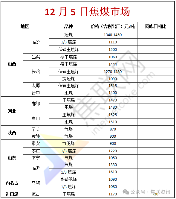 今日国内炼焦煤市场价格稳中偏弱运行。供应方面,焦煤供应增速缓慢,煤矿报价陆续下调后,出货有所好转。下游采购节奏放缓,市场心态偏弱,加之近期线上竞拍回调情况较多,炼焦煤支撑力度较低,影响主产地炼焦煤市场成交价仍在小幅探降。整体看当前市场谨慎观望居多,部分高价煤种或将受库存压力仍有回调预期。价格方面,现山西临汾地区瘦原煤(S0.5、G60、回收70)下调35元至出厂价930元/吨;吕梁地区肥煤(A14、S0.5、G90)下调250元至出厂价1300元/吨;长治地区瘦原煤(S3、G60、回收50)下调9元至出厂价558元/吨;晋中地区肥煤(A14、S1.3、G95)下调111元至出厂价1294元/吨;忻州地区气原煤(S0.9、G60、回收55)下调85元至出厂价480元/吨,气原煤(S2.5、G60、回收45)下调40元至出厂价350元/吨,气精煤(A9、S1.5、G70)上调20元至出厂价820元/吨。需求方面,焦钢企业采购较为谨慎,且钢材价格近日虽有反弹,但钢厂仍多处于亏损状态,对原料煤采购较少,短期内对炼焦煤价格支撑有限。然煤价经前期下跌后,下游对部分超跌煤种有适当拿货现象。综合来看,预计短期国内炼焦煤市场弱稳运行。蒙煤方面,下游采购逐步放缓,口岸蒙煤出货转弱,近两日实际成交较少,口岸市场交投活跃度低下。现蒙5原煤主流报价988元/吨左右,蒙5精煤主流报价1170元/吨左右。