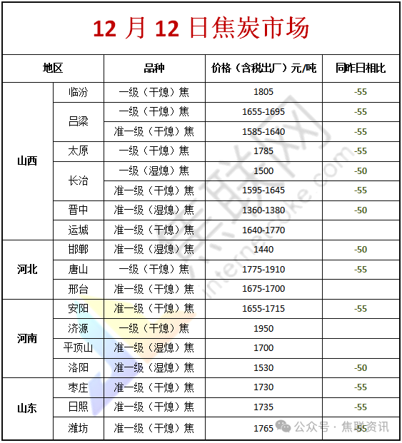 今日国内焦炭市场偏弱运行,今日华东、华北主流钢厂对焦炭采购价格下调50-55元/吨,焦炭第二轮提降全面落地,截止目前累计降幅100-110元/吨。供应方面,焦价经过两轮调整,焦企盈利空间有所收紧,部分焦企利润在盈亏线附近,生产积极性稍有下降。叠加近日焦企因环保等因素执行一定的限产比例,影响焦企开工水平有所下滑,焦炭供应趋于收紧。现山西地区主流准一级干熄焦报1585-1665元/吨。钢厂方面,近日成材价格震荡下行,钢厂利润短期内难以修复。加之部分钢厂受环保等因素影响限产形势仍未放松,铁水日均产量进一步减少,对焦炭需求下滑明显,对焦企签单速度有所放缓,多随用随采。港口方面,港口焦炭现货弱稳运行,贸易商出货积极性提高,集港意愿偏低,现港口准一级湿熄焦主流现汇出库价报1440元/吨(-10)。综合来看,目前在环保扰动下,供应减产对焦炭市场影响有限,焦炭基本面以及成本端煤价驱动不足,市场情绪总体偏向悲观,焦炭价格继续承压。预计短期焦炭市场延续偏弱运行,不排除钢厂对焦炭有继续提降的可能。后期需持续关注钢厂生产情况、原料煤价格走势、宏观政策、运输情况、焦炭库存变化、焦炭供需情况、焦钢利润等对焦炭市场的影响。
