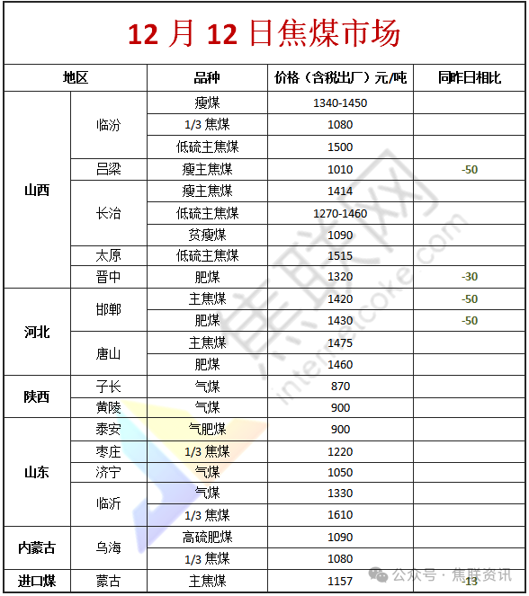 今日国内炼焦煤市场价格偏弱运行。供应方面,部分煤矿恢复较为缓慢,安全检查仍压制焦煤供应增量有限。焦炭第二轮降价影响下游采购节奏放缓,贸易商多数观望,拿货积极性不佳,市场心态偏弱,主产地炼焦煤市场成交价仍在小幅探降。加之焦煤线上竞拍表现不佳,竞拍多以流拍或降价成交为主,不过考虑天气等影响,部分优质骨架资源价格较为坚挺。价格方面,现山西吕梁地区瘦精煤(A10.9、S2.1、G71)下调30元至出厂价910元/吨,气原煤(S1.6、G70、回收40)下调7元至出厂价232元/吨,瘦主焦煤(A7.5、S2.2、G70)下调50元至出厂价1010元/吨;晋中地区肥煤(A9、S1.9、G95)下调30元至出厂价1320元/吨;忻州地区气原煤(S0.9、G60、回收55)下调22元至出厂价521元/吨,气精煤(9.5、S0.9、G65)下调20元至出厂价800元/吨。需求方面,焦炭第二轮降价执行,焦企利润收缩,且钢厂本周盈利率仍有回落,因此对原料价格接受度受限,采购相对谨慎。加之12月检修计划明显增多,铁水产量延续降势,炼焦煤价格支撑走弱。综合来看,预计短期国内炼焦煤市场承压偏弱运行。蒙煤方面,近期蒙煤通关量环比回升,然下游企业按需采购满足刚需,加之焦炭第二轮提降落地,市场心态不佳下,贸易商多观望后续市场。现蒙5原煤主流报价930元/吨左右,蒙5精煤主流报价1157元/吨左右。