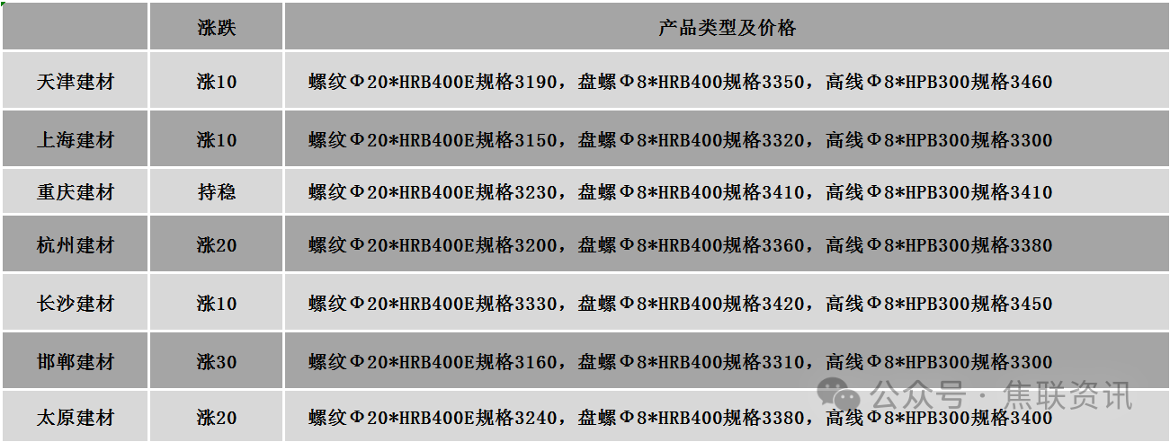 今日钢材价格稳中小幅上涨运行,多数地区上涨10-20元/吨。涨跌占比:24个螺纹钢主要地区中,16个地区上涨,占比66.67%,8个地区持平,占比33.33%。原料方面:唐山150*150普碳方坯价格下跌10元至2970元/吨。螺纹钢(HRB400 φ25)均价上涨12元至3455元/吨;高线(HPB300 φ8)均价上涨8元至3606元/吨;热轧卷板(Q235B/SS400 3.0*1500*C)均价上涨5元至3491元/吨;冷轧卷板(ST12/DC01 1.0mm*1250*C)均价3942元/吨;中厚板(Q235B 20mm*2000*L)均价上涨3元至3513元/吨。期货价格:日盘螺纹2605开3124收3139,最高3151最低3121,涨18涨幅0.58%;铁矿2605开812.0收813.0,最高819.5最低811.0,涨0.5涨幅0.06%。钢厂调价:新抚钢螺纹钢上调10;江苏鸿泰螺纹钢上调20;玉溪玉昆、玉溪仙福、云南德胜建材下调20;陕钢西安建材下调40。市场方面:近期中东地缘局势持续紧张,引发市场对原油供应稳定性的担忧,原油价格维持高位波动,国际能源价格再度回升,钢材成本支撑增强,日盘螺纹主力上涨0.58%收于3139元/吨,热卷主力上涨0.33%至3308元/吨;双焦期货继续震荡调整,焦煤主力续跌0.33%报1214元/吨,焦炭微涨0.2%至1753.5元/吨。受地缘政治影响,国内钢市出口受阻,且国内下游消费呈现缓慢恢复状态,库存虽小幅去化,但库存高位制约钢价上涨空间。日盘期螺小幅上涨,建材现货价格跟随小幅上行,市场心态相对坚挺,多数市场有探涨现象,但涨幅相对较小,少部分钢厂窄幅调整报价,市场交易氛围表现一般,终端需求释放明显不足,下游多数按需采购,现货价格上行承压,预计短期建材现货价格或窄幅震荡运行。