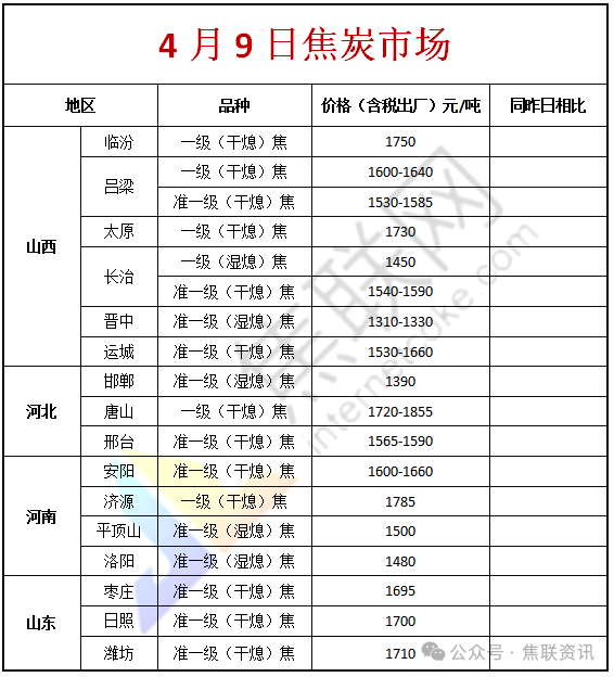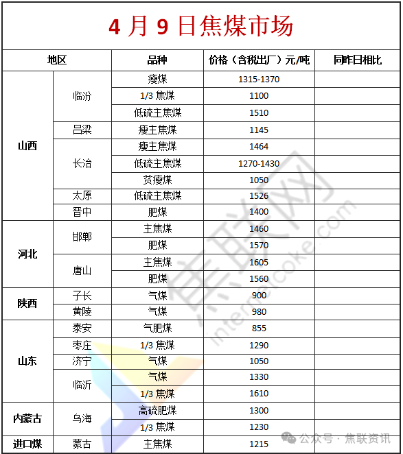 今日国内焦炭市场偏强运行,内蒙地区部分焦企对捣固湿熄焦提涨50元/吨,捣固干熄焦价格上涨55元/吨,自4月13日零时起执行。供应方面,当前原料煤价格震荡运行、入炉煤成本小幅下移,焦企利润空间进一步修复,生产积极性稍有提升,当前焦炭供应保持稳定,叠加下游钢厂对焦炭需求较好,焦企出货情况良好,厂内焦炭继续保持低库存或零库存,部分焦企惜售心理渐起。现山西地区主流准一级干熄焦报1530-1585元/吨。需求方面,钢厂开工积极性不减,铁水产量持续攀升,且厂内库存多呈下降趋势,当前对焦炭采购积极性尚可。港口方面,港口焦炭现货偏弱运行,焦炭第二轮提涨开启,港口心态有所好转,下游询盘有所增加,然贸易商集港情绪一般,内贸现货市场交投氛围也一般,现港口准一级湿熄焦主流现汇出库价报1460元/吨(-20)。综合来看,钢厂铁水产量延续增势,整体开工情况较好,考虑到由于运力影响到货不佳,钢厂连续三周厂内焦炭库存呈掉库态势,补库需求明显增加,而当前焦企厂内焦炭库存偏低,焦炭供需保持紧平衡状态,市场看涨呼声渐起,,预计短期内焦炭市场稳中偏强运行。后期需持续关注钢厂生产情况、原料煤价格走势、宏观政策、运输情况、焦炭库存变化、焦炭供需情况、焦钢利润等对焦炭市场的影响。等对焦炭市场的影响。