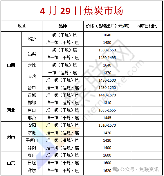 今日国内炼焦煤市场稳中偏弱运行。供应方面,区域内主流大矿均正常生产,个别煤矿因自身原因停产。当前焦钢企业盈利不佳,且双焦盘面下跌,下游采购心态偏谨慎,焦企对原料煤多按需补库,贸易环节观望居多,煤矿签单一般,部分价格承压下行,多数仍以稳为主。价格方面,现山西临汾地区高硫主焦精煤(A11、S3.5、G92)上调10元至出厂价860元/吨,高硫主焦精煤(A10.5、S3.7、G90)下调9元至出厂价791元/吨,肥原煤(S2.5、G85,回收40-45)下调41元至出厂价540元/吨,肥原煤(S4、G95、回收35-40)上调1-21元至出厂价400-541元/吨,肥精煤(A9、S0.5、G93)下调50元至出厂价1200元/吨,肥精煤(A11、S3.8、G95)下调28元至出厂价872元/吨,瘦精煤(A10.5、S0.6、G40)上调30元至出厂价1130元/吨,低硫瘦主焦煤(A10.5、S2.0、G75)下调20元至出厂价980元/吨;吕梁地区主焦原煤(S1.3、G75、回收45)下调19元至出厂价611元/吨,主焦精煤(A11、S1、G85)下调27元至出厂价1123元/吨,主焦精煤(A9.5、S1.3、G78)上调10元至出厂价1070元/吨;长治地区低硫瘦主焦煤(A8.0、S0.5、G70)下调38元至出厂价1253元/吨,低硫主焦精煤(A11.5、S1.0、G75)上调3元至出厂价1137元/吨,瘦原煤(S3、G60、回收50)上调11元至出厂价453元/吨;晋中地区高硫主焦煤(A7、S3.1、G85)下调6元至出厂价990元/吨;太原地区瘦精煤(A10.5、S0.6、G40)下调40元至出厂价1060元/吨,1/3焦煤(A10、S1.8、G85)上调25元至出厂价1045元/吨。需求方面,考虑到五一假期临近,下游部分企业仍需备库,且终端铁水产量高位,焦煤刚需仍存,短期煤价仍有一定支撑。但由于焦炭提涨搁置,焦钢企业多处于观望状态,短期仍以刚需采购及消耗库存煤为主。综合来看,预计短期国内炼焦煤市场窄幅调整运行。蒙煤方面,焦炭二轮提涨受阻,产地炼焦煤竞拍价格小幅下降,市场对后期焦煤价格信心不足。现蒙5原煤主流报价835元/吨左右,蒙5精煤主流报价1030元/吨左右。