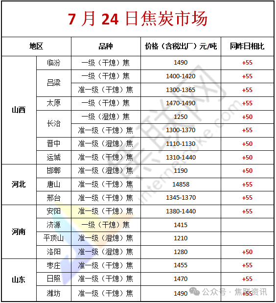 焦炭方面,今日国内焦炭市场偏强运行。今日下午中焦协市场委员会召开市场分析会,与会企业达成以下决议: 1、自7月25日零时起,对钢厂客户执行捣固湿熄焦价格上调50元/吨,捣固干熄焦价格上调55元/吨。2、继续坚持预收款的商业模式,不赊销,不放弃检斤计量化验权。会后,河北、山西地区主导焦企对焦炭开启第三轮提涨50-55元/吨,河北、天津地区部分钢厂于今日下午已接受焦炭第三轮提涨。供应方面,尽管焦炭第二轮提涨已全面落地,但由于原料焦煤价格持续走强,焦企入炉煤成本压力居高不下,部分企业仍处于亏损状态。叠加原料供应紧张等因素制约,焦企生产负荷持续受限,市场供应呈现收缩态势,现山西地区主流准一级干熄焦报1320-1395元/吨。需求方面,钢厂高炉开工率维持高位,刚性需求支撑明显,叠加近期钢材价格持续上涨,钢厂利润较为可观,对焦炭补库需求较好。港口方面,港口焦炭现货偏强运行,焦价连续提涨带动市场情绪走强,现港口准一级冶金焦主流现汇出库价1450-1500元/吨。综合来看,受利润压缩及环保政策制约,焦企开工率持续受限,供应端呈现收缩态势,而下游钢厂铁水产量高位,补库需求持续释放,焦企普遍出现排队装车现象,部分企业惜售情绪浓厚。叠加原料焦煤价格持续攀升,对焦炭价格形成强成本支撑,预计短期内焦炭市场或继续偏强运行。后期需持续关注宏观政策、焦炭库存变化、焦炭供需情况、原料煤价格走势、焦钢盈利情况变化、钢材消费表现等对焦炭市场的影响。