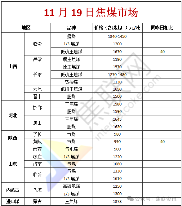 今日国内炼焦煤市场价格稳中偏弱运行。供应方面,煤矿主产地环保与安全检查同步,少数区域供应量增加,焦煤供应增量不明显。焦钢企业阶段性补库结束,采购量趋于谨慎,伴随投机情绪退场,成交氛围较前期稍有转冷,线上竞拍流拍比上升,部分高价煤矿签单困难,报价承压回调。不过短期内焦煤仍有一定支撑,钢厂维持高铁水生产状态,原料需求仍有支撑。价格方面,现山西临汾地区主焦煤(A9、S0.5、G88)下调40元至出厂价1670元/吨,主焦煤(A9.5、S0.5、G80)下调8元至出厂价1630元/吨,主焦煤(A11、S3.5、G92)下调12元至出厂价1220元/吨,肥煤(A9、S0.5、G93)上调15元至出厂价1420元/吨;吕梁地区主焦煤(A6.5、S0.75、G90)下调50元至出厂价900元/吨,主焦煤(A11、S0.6、G88)下调37元至出厂价1563元/吨,主焦煤(A11、S1、G85)下调46元至出厂价1550元/吨,1/3焦原煤(S1.5、G70、回收58)下调42元至出厂价692元/吨,气原煤(S0.9、G55、回收48)上调2元至出厂价4225元/吨;长治地区瘦原煤(S0.32、G15、回收70)上调8元至出厂价888元/吨,瘦精煤(A10、S0.4、G32)下调60元至出厂价1218元/吨,瘦精煤(A6.5、S2.7、G80)下调30元至出厂价1120元/吨;晋中地区肥煤(A14、S1.3、G95)下调10元至出厂价1453元/吨,瘦精煤(A9、S2.8、G77)下调50元至出厂价1150元/吨;太原地区1/3焦煤(A10、S1.8、G85)下调20元至出厂价1300元/吨;陕西黄陵地区气精煤(A7.0、S0.45、G70)下调40元至出厂价990元/吨。需求方面,焦化企业以及钢厂经前期补库之后采购意愿有所回落,叠加部分煤价处于高位水平,下游观望情绪较浓,进一步补库意愿较淡,采购多以刚需为主,心态较为谨慎。综合来看,预计短期国内炼焦煤市场震荡调整运行,部分高价资源继续承压下行。蒙煤方面,产地炼焦煤线上流拍率明显增加,进口蒙煤市场成交氛围一般,贸易商报价小幅下调。现蒙5原煤主流报价1040元/吨左右,蒙5精煤主流报价1378元/吨左右。