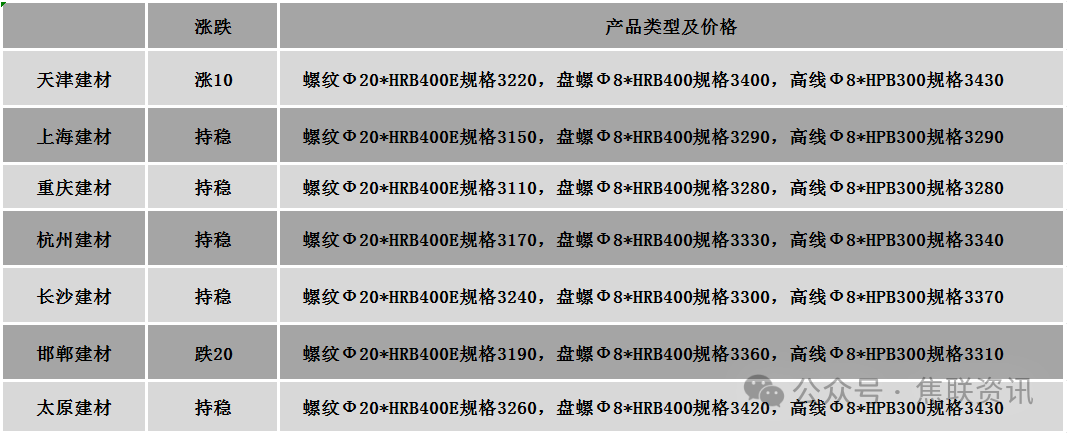 今日建筑钢材价格稳中个调运行,个别市场涨跌互现10元/吨。24个螺纹钢主要市场中,21个市场持平,占比87.5%,2个市场下跌,占比8.33%,1个市场上涨,占比4.17%。期货方面:日盘螺纹2601开3084收3070,最高3096最低3065,跌15跌幅0.49%;铁矿2601开791.5收791.5,最高797.0最低786.5,涨6.0涨幅0.76%。行业方面:2025年永钢11-3期折扣:螺纹3折(上期3折),线盘5.5折(上期5.5折)。2025年中天钢铁11-3期华东地区建材计划量折扣为:螺纹4折(上期4折),线材6.5折(上期6.5折),盘螺6.5折(上期6.5折)。宏观方面:9月中国减持5亿美元美债 日本增持89亿美元。国际油价走高,WTI 12月期货上涨1.4%,结算价报每桶60.74美元。布伦特1月期货上涨1.1%,结算价报每桶64.89美元。市场方面:日盘期钢价格继续回调,持仓规模继续减少,螺纹主力继续收报小阴线;双焦期货继续领跌黑色系,再次刷新逾一个月新低,焦煤主力收跌近3%,焦炭最低下探至1632.5点。期螺小幅收跌,现货价格多数持平,钢厂报价基本持稳,下游仍按需采购为主,成交表现不及预期,商家对后市持谨慎观望态度,目前降库出货为主。考虑到钢材市场需求逐渐转弱,现货价格仍有回调压力,预计短期建材现货价格或窄幅震荡运行。