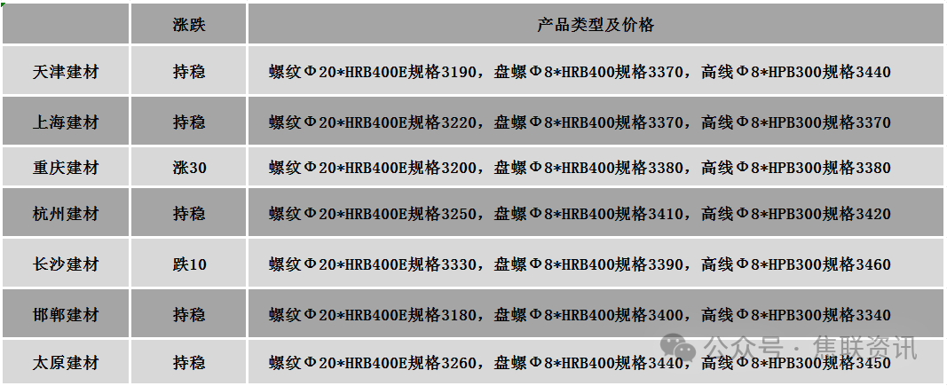 今日建筑钢材价格稳中调整运行,局部市场涨跌互现10-30元/吨左右。24个螺纹钢主要市场中,19个市场持平,占比79.17%,3个市场下跌,占比12.5%,2个市场上涨,占比8.33%。期货方面:日盘螺纹2605开3178收3157,最高3181最低3155,跌4跌幅0.13%;铁矿2605开776.0收769.0,最高779.0最低766.0,跌6.0跌幅0.77%。行业方面:本周全国90家独立电弧炉钢厂平均产能利用率53.82%,环比上升1.1个百分点,同比上升0.43个百分点。全国90家独立电弧炉钢厂平均开工率67.72%,环比下降1.41个百分点,同比下降0.11个百分点。宏观方面:乘联分会崔东树:10月全国二手车市场交易量176万台 同比增长2.7%。11月全国期货市场成交66.61万亿元 同比增长7.11%。山西“十五五”规划建议:加快建成辐射全国的煤炭、焦炭交易中心。世界黄金协会报告预计,美债收益率下行、地缘政治风险高企以及显著增强的避险需求叠加,将为黄金提供极为强劲的顺风;2026年黄金价格有望再上涨15%至30%。美国白宫国家经济委员会主任哈塞特表示,美联储下次会议可能会降息,预计将降息约25个基点。市场方面:日盘期钢价格震荡回落,螺纹主力最低下探3155元/吨,热卷主力收盘持平。双焦期货快速下跌,焦煤主力收盘跌幅2.31%,焦炭主力跌破1600点一线,跌幅3.15%。日盘期螺窄幅震荡,商家报价稳中盘整,局部市场小幅调整,多数商家挺价意愿较强。受年底资金面紧张影响,终端采购意愿明显受抑,商家以零散出货为主,整体成交表现一般。当前钢材市场呈现供需双弱的局面,需求下滑对钢价造成明显拖累,但重要会议召开在即,市场对宏观提振预期抱有期待,预计短期建材现货价格或稳中窄幅调整运行。