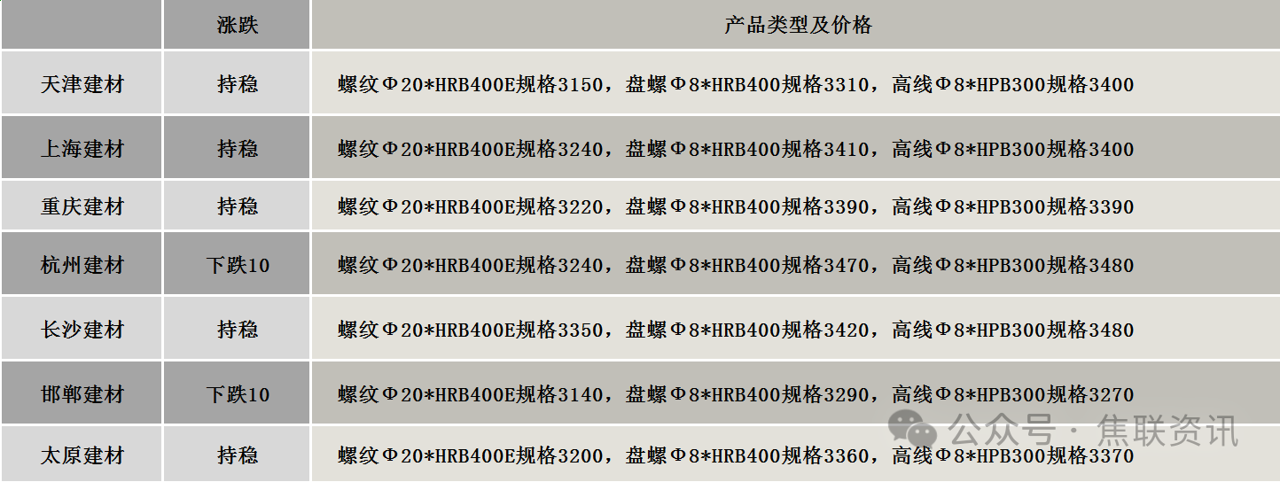 今日建筑钢材价格稳中个调运行,局部市场下跌10元/吨。24个螺纹钢主要市场中,21个市场持平,占比87.5%,2个市场上涨,占比8.33%,1个下跌,占比4.17%。期货方面:日盘螺纹2605开3141收3127,最高3144最低3123,涨1涨幅0.03%;铁矿2605开779.0收778.5,最高781.5最低774.5,涨4.5涨幅0.58%。钢厂调价:江苏鸿泰螺纹钢上调10;新抚钢螺纹钢上调30。库存方面:本周五大主要钢材品种总库存下降36.79万吨至1257.99万吨,其中社会库存下降33.91万吨至872.56万吨,钢厂库存下降2.88万吨至385.43万吨。宏观方面:中国人民银行货币政策委员会2025年第四季度(总第111次)例会于12月18日召开。会议认为,要继续实施适度宽松的货币政策,加大逆周期和跨周期调节力度。日本央行行长:日本的实际利率仍处于极低水平。离岸人民币兑美元升破7.0大关,为2024年9月以来首次。美国结束上届政府针对中国芯片贸易调查 未来18个月不对中国芯片加征额外关税。北京调整住房限购政策,将非京籍家庭购买五环内商品住房的社保或个税缴纳年限,由现行的“3年”调减为“2年”;购买五环外商品住房的,由现行的“2年”调减为“1年”;商贷利率不再区分首套二套。美国上周首次申领失业救济人数为214,000人,预估为223,500人。市场方面:日盘螺纹、热卷继续窄幅震荡运行;焦煤主力夜盘冲高回落后也窄幅震荡,持平收盘。期螺依旧盘整运行,现货价格整体持稳运行,钢厂报价保持坚挺,市场询货不积极,整体市场氛围一般,成交表现偏弱,预计短期建材现货价格或继续盘整运行为主。