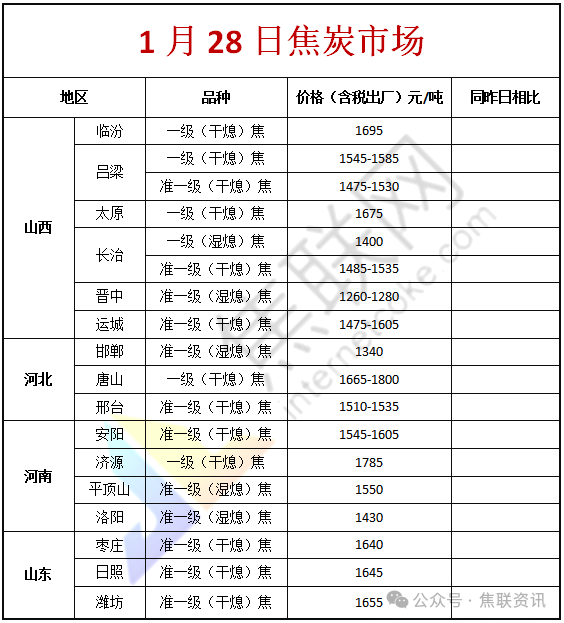 今日国内焦炭市场稳中偏强运行,邢台、天津、唐山、石家庄地区部分钢厂接受焦炭采购价格上调50-55元/吨,于2026年1月30日零点执行,焦炭首轮提涨部分落地。供应方面,原料端焦煤价格走势渐趋稳定,焦炭成本支撑依旧较强,但同时焦企成本压力也进一步增加,焦企利润继续承压。除部分焦企受制于利润亏损以及环保因素影响有减产限产外,其余多数焦企仍维持正常生产水平,当前焦炭供应较为稳定。现山西地区主流准一级干熄焦报1475-1555元/吨。需求方面,近期多地迎来雨雪天气,考虑到后期市场运力或受一定程度影响,部分低库存钢厂采购积极性稍有回升,但近期钢材价格弱势下行,且临近春节市场整体需求处于低点,加之经过前期持续补库,多数钢厂厂内焦炭库存基本已至高位,当前对焦炭多按需采购。港口方面,港口焦炭现货暂稳运行,贸易商观望情绪浓厚,集港意向较弱,现港口准一级湿熄焦主流现汇出库价报1450元/吨(-)。综合来看,近日钢材价格震荡下滑,部分贸易商也退市观望,市场情绪稍有回落,然当前原料煤价格仍处高位,焦炭成本支撑较强,部分焦企利润处于倒挂状态,故今日部分钢厂接受焦炭首轮提涨,预计短期内焦炭市场或偏强运行。后期需持续关注宏观政策、运输情况、焦炭库存变化、焦炭供需情况、原料煤价格走势、钢厂生产情况、焦钢利润等对焦炭市场的影响。
