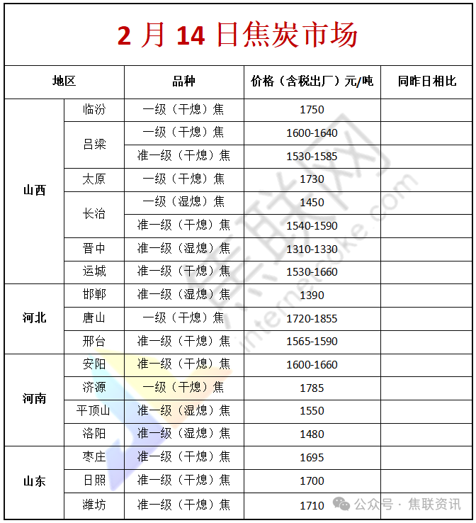 今日国内焦炭市场弱稳运行。供应方面,当前焦企开工基本持稳到春节后,焦炭供应量较为稳定。然受下游采购节奏放缓及春节放假货物发运工作稍有紧张影响,部分焦企出货不畅,厂内焦炭库存有所累积。现山西地区主流准一级干熄焦报1530-1585元/吨。需求方面,春节氛围渐浓,市场已进入休假模式,终端成交趋于平淡,钢厂对焦炭多按需采购为主。港口方面,港口焦炭现货暂稳运行,市场交投氛围偏冷清,贸易商多持观望态度,现港口准一级湿熄焦主流现汇出库价报1470元/吨(-)。综合来看,下游钢厂对焦炭控量采购,影响焦企出货不畅,厂内库存压力较大,加之终端需求表现持续偏弱,钢厂高炉减产仍在继续,对焦炭需求回落,叠加原料市场对焦炭现货价格缺少有力支撑,预计春节前焦炭市场将持续弱稳运行。后期需持续关注钢厂生产情况、原料煤价格走势、宏观政策、运输情况、焦炭库存变化、焦炭供需情况、焦钢利润等对焦炭市场的影响。