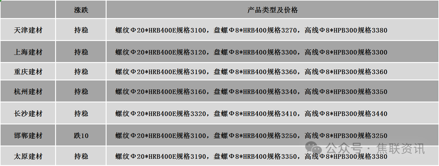今日钢材价格稳中偏弱运行,局部下跌10元/吨。涨跌占比:24个螺纹钢主要市场中,20个市场持平,占比83.33%,4个市场下跌,占比16.67%。价格方面:螺纹钢均价3206元/吨,较上一交易日下跌2元/吨;高线均价3390元/吨,较上一交易日下跌1元/吨;热轧卷板主流价格均价3319元/吨,较上一交易日下跌1元/吨;冷轧卷板均价3774元/吨,较上一交易日持平;中厚板主流价格均价3342元/吨,较上一交易日下跌1元/吨。期货价格:日盘螺纹2605开3070收3074,最高3078最低3057,涨2涨幅0.07%;铁矿2605开751.5收753.5,最高754.0最低743.0,涨5.0涨幅0.67%。钢厂调价:新抚钢螺纹钢下调10;达钢重庆建材下调30。行业数据:上周(2月23日-3月1日),10个重点城市新建商品房成交(签约)面积总计132.02万平方米,环比春节前一周(2月9日-2月15日)增长3.5%,今年以来累计成交面积同比下降16.9%。同期,10个重点城市二手房成交(签约)面积总计130.77万平方米,环比春节前一周(2月9日-2月15日)增长2.7%,今年以来累计成交面积同比下降10.9%。市场方面:日盘期钢价格维持窄幅震荡运行,螺纹主力上行0.07%报收于3074元/吨,热卷主力下行0.03%至3219元/吨;中东局势骤然升级,国际能源市场不断波动,带动煤焦价格上行,焦煤主力大涨4.01%报1127元/吨,焦炭收高3.42%至1694元/吨。期螺震荡运行,市场情绪一般,商家报价基本平稳,积极消化库存,出货无明显增量,下游工地多数未进入正式施工阶段,整体需求表现清淡,终端多零星采购为主,市场心态多持谨慎观望状态,预计短期钢价或稳中局部波动运行。