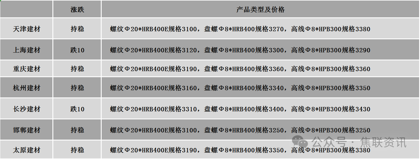 今日钢材价格继续稳中偏弱运行,局部下跌10-20元/吨。涨跌占比:24个螺纹钢主要市场中,20个市场持平,占比83.33%,4个市场下跌,占比16.67%。价格方面:螺纹钢均价3204元/吨,较上一交易日下跌2元/吨;高线均价3388元/吨,较上一交易日下跌2元/吨;热轧卷板主流价格均价3318元/吨,较上一交易日下跌1元/吨;冷轧卷板均价3770元/吨,较上一交易日下跌4元/吨;中厚板主流价格均价3344元/吨,较上一交易日上涨2元/吨。期货价格:日盘螺纹2605开3074收3071,最高3085最低3061,涨4涨幅0.13%;铁矿2605开753.0收752.0,最高753.0最低745.0,涨3.0涨幅0.40%。行业数据:2月下旬,21个城市5大品种钢材社会库存1088万吨,环比增加135万吨,上升14.2%,库存连续上升;比年初增加367万吨,上升50.9%;比上年同期减少15万吨,下降1.4%。市场方面:日盘期钢价格继续窄幅震荡运行,螺纹、热卷主力均报收小阴线,热卷报收于3212元/吨;重要会议召开,华北地区钢厂集中限产,煤焦需求下降,双焦盘面弱势运行,焦煤基本回吐昨日涨幅,报收于1097元/吨,焦炭跌幅相对较小。黑色系盘面震荡运行,钢材现货价格整体变化不大,多维持稳定报价,局部市场有小幅涨跌波动,终端复工情况一般,市场成交表现清淡。目前市场需求尚未恢复正常,复工进度仍然偏慢,冬储资源陆续到货,商家库存压力逐渐增大,整体出货意愿较强,预计短期钢材价格或稳中偏弱运行。