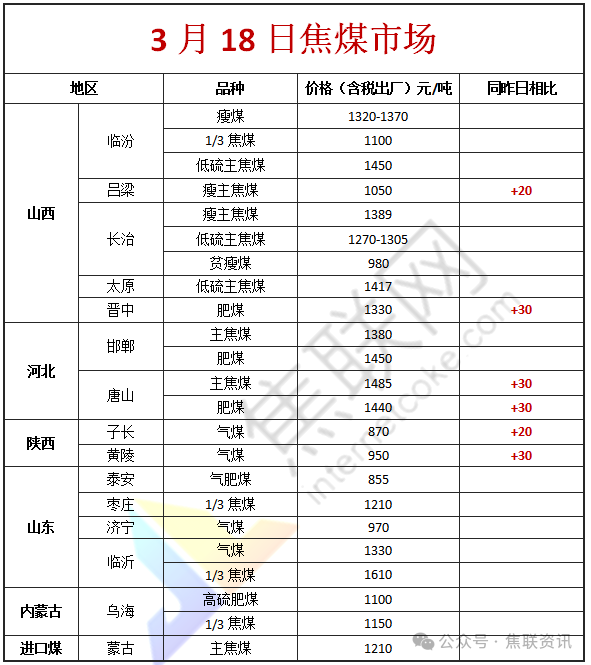 今日国内炼焦煤市场稳中有涨运行。供应方面,主产地煤矿稳定开工,焦煤产量维持充足态势。随着近期下游询价增多及成交好转,煤矿端库存压力有所缓解,目前煤矿方面多有预售情况,矿方心态乐观,部分前期超跌的煤种及优质主焦煤资源,煤矿挺价甚至小幅探涨的意愿增强。价格方面,现山西临汾地区1/3焦煤(A10、S0.7、G85)上调40元至出厂价1280元/吨,主焦煤(A9.5、S0.5、G80)上调10元至出厂价1540元/吨,肥煤(A11、S0.5、G95)上调24元至出厂价1493元/吨,瘦精煤(A10.5、S0.6、G50)下调6元至出厂价1251元/吨,瘦主焦煤(A10.5、S2.0、G75)上调92元至出厂价1142元/吨;吕梁地区主焦原煤(S1.3、G75、回收45)上调34元至出厂价820元/吨,主焦煤(A11、S0.7、G90)上调10元至出厂价1480元/吨,主焦煤(A10.5、S0.9、G85)下调15元至出厂价1468元/吨,主焦煤(A9.5、S2.2、G80)上调20元至出厂价1265元/吨,瘦主焦煤(A7.5、S2.2、G70)上调20元至出厂价1050元/吨,瘦精煤(A8.5、S1.3、G70)上调10元至出厂价1300元/吨,气原煤(S1.6、G70、回收40)下调14元至出厂价224元/吨;长治地区主焦煤(A9.5、S0.45、G65)下调50元至出厂价1300元/吨,瘦精煤(A10.5、S0.5、G50)下调30元至出厂价1120元/吨,贫瘦精煤(A10.9、S0.33、G12)上调24元至出厂价1030元/吨,贫瘦精煤(A9.5、S0.46、G7)下调30元至出厂价900元/吨;晋中地区主焦煤(A7、S3.1、G85)上调57元至出厂价1336元/吨,肥煤(A9、S1.9、G95)上调30元至出厂价1330元/吨。需求方面,近日成材成交量回升,带动钢材价格有涨,钢厂利润有所修复,但目前复产仍较谨慎,且焦企对高价资源采购趋于谨慎,按需采购为主。综合来看,随着下游逐步复产,需求增加,炼焦煤市场企稳且有小幅反弹空间。蒙煤方面,进口蒙煤市场询价增多,成交氛围有所好转,下游采购意愿加强,后续成交情况有待观望。现蒙5原煤主流报价1092元/吨左右,蒙5精煤主流报价1210元/吨。