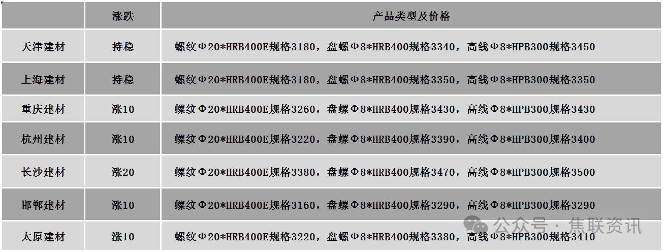 今日钢材价格稳中上涨运行,部分地区上涨10-20元/吨。涨跌占比:24个螺纹钢主要地区中,16个地区持平,占比66.67%,8个地区上涨,占比33.33%。原料方面:唐山150*150普碳方坯价格上涨10元至2980元/吨。螺纹钢(HRB400 φ25)均价上涨3元至3455元/吨;高线(HPB300 φ8)均价上涨5元至3612元/吨;热轧卷板(Q235B/SS400 3.0*1500*C)均价上涨10元至3485元/吨;冷轧卷板(ST12/DC01 1.0mm*1250*C)均价上涨12元至3933元/吨;中厚板(Q235B 20mm*2000*L)均价上涨3元至3494元/吨。期货价格:日盘螺纹2605开3148收3140,最高3167最低3135,跌3跌幅0.10%;铁矿2605开816.0收811.0,最高818.5最低806.0,跌1.0跌幅0.12%。行业数据:海关总署最新数据显示,2026年2月,中国出口钢铁板材463万吨,同比下降12.6%;1-2月累计出口933万吨,同比下降14.5%。2月,中国出口钢铁棒材119万吨,同比下降7.7%;1-2月累计出口232万吨,同比下降5.9%。市场方面:因此前伊拉克政府和库尔德当局达成协议,恢复通过土耳其杰伊汉港出口石油,这略微缓解了人们对中东石油供应的担忧,周三原油期货明显回落,能源间的替代效应导致相关品种跟跌,日盘黑色系板块整体下移,双焦期货冲高回落,焦煤最低下探至1151元/吨,跌幅超1%,焦炭最低下探至1712元/吨;螺纹、热卷均报收长上影线小阴线,热卷主力收盘微幅收红。早盘黑色系期货冲高,为市场提振起到一定作用,现货价格部分小幅上行。盘中期螺冲高乏力,弱势回调,市场交易氛围有所走弱,成交渐显疲态,谨慎观望情绪提升,价格也逐步止涨趋稳。当前需求在逐步恢复中,宏观政策托底、成本上升支撑,为钢材现货价格持稳提供底部保证,终端和商家多维持谨慎坚挺心态,现货价格跟随期货价格小幅波动,预计短期钢价或继续稳中小幅波动运行。