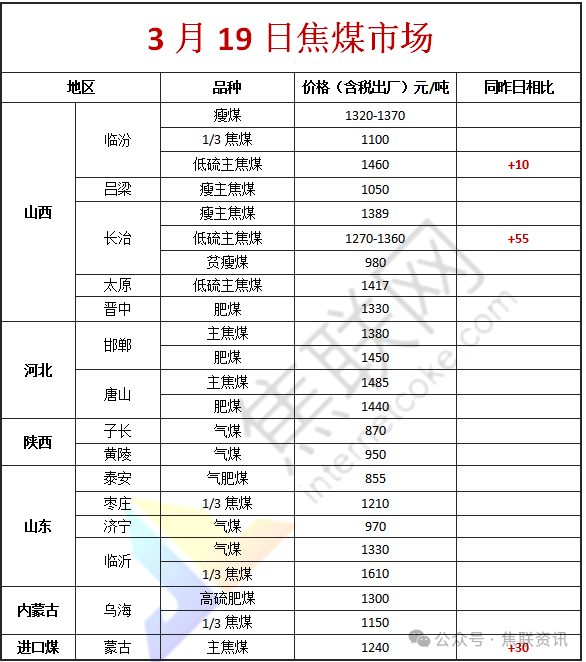 今日国内炼焦煤市场稳中上涨。供应方面,主产地煤矿生产整体保持稳定,供应端宽松格局未改。部分煤种价格经过前期调整后,部分焦化厂对性价比较高的煤种也开始采购,市场成交活跃度有所回升,贸易环节同样受盘面波动刺激入市,主流矿点成交情况良好,价格涨多跌少,反映出市场情绪仍偏向乐观。价格方面,现山西临汾地区主焦煤(A9、S0.5、G85)上调20元至出厂价1470元/吨,肥原煤(S4、G95、回收35)上调46元至出厂价824元/吨;吕梁地区主焦煤(A11、S0.7、G90)上调20元至出厂价1500元/吨;长治地区瘦原煤(S0.32、G15、回收70)上调64元至出厂价836元/吨,瘦精煤(A10、S0.4、G32)上调68元至出厂价1140元/吨,主焦煤(A11.5、S1.0、G85)上调55元至出厂价1360元/吨,瘦原煤(S3、G60、回收50)上调93元至出厂价810元/吨,瘦精煤(A9.5、S2.8、G50)上调141元至出厂价1120元/吨;晋中地主焦煤(A12、S0.9、G75)上调70元至出厂价1270元/吨,贫瘦精煤(A10、S2.0、G15)上调70元至出厂价970元/吨。需求方面,随着终端利润的逐步好转,部分钢厂开始执行复产计划,市场需求逐渐好转,但近期双焦期货盘面有所回落,且下游面对高价煤补库意愿不高,焦钢企业拿货仍显谨慎。整体来看,预计短期国炼焦煤市场或将震荡偏强运行。蒙煤方面,近期产地炼焦煤出货好转,进口蒙煤市场对后市煤价恢复有一定信心,但部分企业仍存观望态度。现蒙5原煤主流报价1073元/吨左右,蒙5精煤主流报价1240元/吨。
