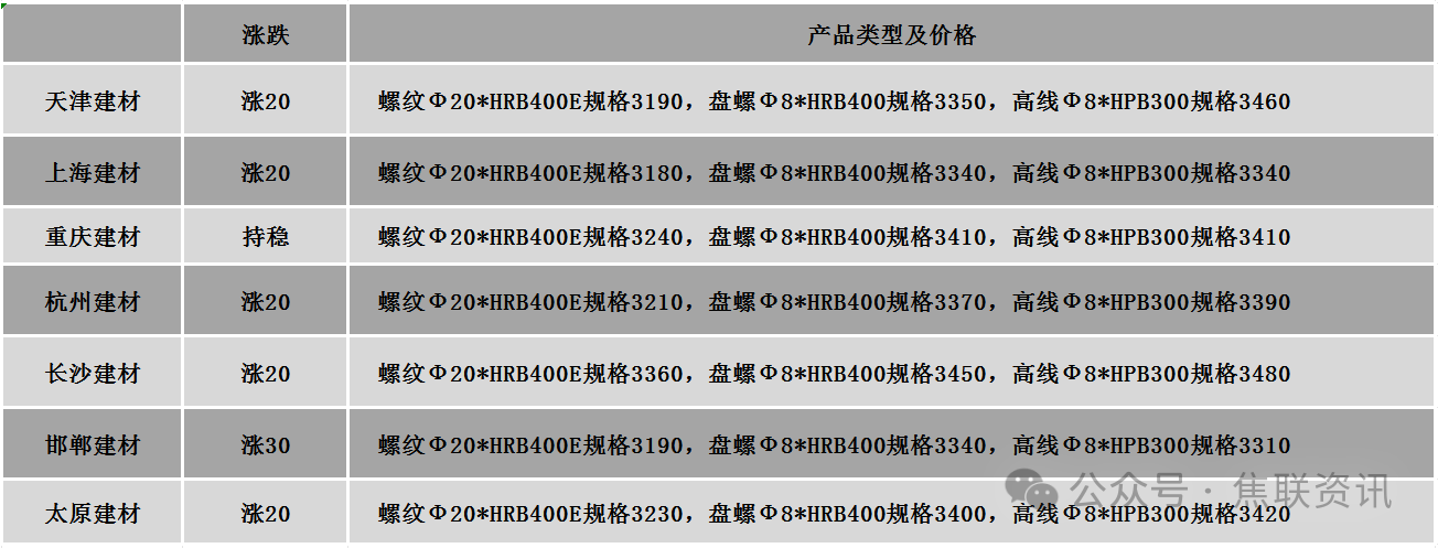 今日钢材价格稳中上涨运行,多数地区上涨10-20元/吨。涨跌占比:24个螺纹钢主要地区中,17个地区上涨,占比70.83%,7个地区持平,占比29.17%。原料方面:唐山150*150普碳方坯价格上调10至3000元/吨。螺纹钢(HRB400 φ25)均价上涨15元至3457元/吨;高线(HPB300 φ8)均价上涨15元至3612元/吨;热轧卷板(Q235B/SS400 3.0*1500*C)均价上涨12元至3487元/吨;冷轧卷板(ST12/DC01 1.0mm*1250*C)均价上涨8元至3938元/吨;中厚板(Q235B 20mm*2000*L)均价上涨8元至3504元/吨。期货价格:日盘螺纹2605开3120收3154,最高3165最低3111,涨28涨幅0.90%;铁矿2605开814.5收819.0,最高826.0最低812.5,涨7.5涨幅0.92%。钢厂调价:江苏鸿泰螺纹钢上调10。行业数据:海关统计数据显示,中国2026年2月钢材出口量为7,837,462.87吨,环比增长1.08%, 同比增长46.20%。市场方面:近期受地缘冲突持续发酵影响,导致能源板块供应收紧,从而推动石油价格宽幅上涨。同时,紧张的国际形势也从能源、贵金属、有色板块传导至黑色板块,带动了铁矿石、焦煤等原燃料价格的走高。日盘焦煤期货强势涨停,主力收高10.9%报1289.5元/吨,封涨停板;焦炭主力跟涨6.92%报1847元/吨,期价双双创逾4个月新高。受双焦大涨带动,螺纹、热卷价格延续涨势,螺纹最高上探至3165元/吨,热卷最高上探至3335元/吨。受期螺价格上涨提振,建材现货价格多数小幅上涨,成交情况较前期有所好转,但仍达不到预期。由于当前钢材库存依旧处于高位,终端需求跟进乏力,商家对后市看法偏谨慎,采取积极出货的策略,下游采购观望情绪明显,预计短期上涨态势接力不足,整体偏震荡运行为主。