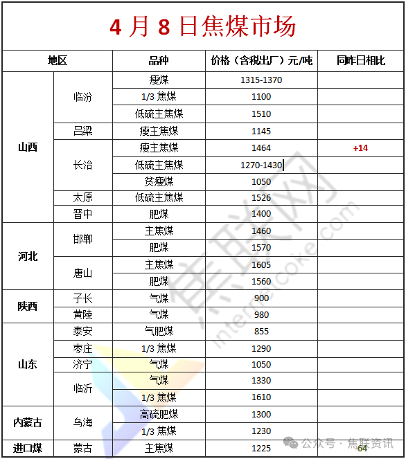 今日国内炼焦煤市场震荡调整运行。供应方面,多数煤矿生产稳定,产量正常,个别煤矿有停产减量的情况。经过前期补库,焦企原料库存水平改善,考虑到市场暂不明朗,焦企对高价资源观望增加,市场情绪有所回落,随着贸易商积极出货,部分煤种价格承压回落。不过由于煤矿库存低位,且有预售订单,价格多以稳为主。价格方面,现山西临汾地区肥原煤(S4、G95、回收35-40)上调8-34元至出厂价714-924元/吨;吕梁地区主焦原煤(S1.3、G75、回收45)下调40元至出厂价793元/吨,主焦煤(A11、S0.6、G88)下调31元至出厂价1493元/吨;长治地区主焦煤(A11.5、S1.0、G85)下调20元至出厂价1430元/吨,主焦煤(A8、S0.4、G65)上调10元至出厂价1460元/吨,瘦主焦煤(A8.0、S0.5、G70)上调14元至出厂价1464元/吨;晋中地区肥煤(A14、S1.3、G95)下调53元至出厂价1275元/吨,瘦精煤(A9、S2.8、G77)下调100元至出厂价1150元/吨,瘦原煤(S2.8、G75、回收35)下调70元至出厂价650元/吨;忻州地区气原煤(S0.9、G60、回收55)上调6元至出厂价628元/吨,气原煤(S0.9、G50、回收45)下调23元至出厂价420元/吨。需求方面,下游焦企开工整体保持稳定,但受前期煤价上涨及焦炭价格走势不明朗影响,焦企采购心态趋于谨慎,多以消耗现有库存为主,补库意愿不强。钢厂方面,虽铁水产量维持高位,对焦煤存在刚性需求,但面对当前市场价格,采购节奏亦有所放缓,更倾向于按需采购。综合来看,供需双方博弈加剧,市场成交以低价资源为主,预计短期国内炼焦煤市场维持弱稳态势。蒙煤方面,口岸市场延续清淡局面,下游采购积极性不高,贸易商为促进成交,报价继续小幅下探,实际成交价格围绕低位波动。现蒙5原煤主流报价1055元/吨左右,蒙5精煤主流报价1225元/吨左右。