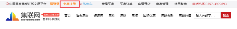 1.登录焦联网首页,点击屏幕上方“免费注册”。